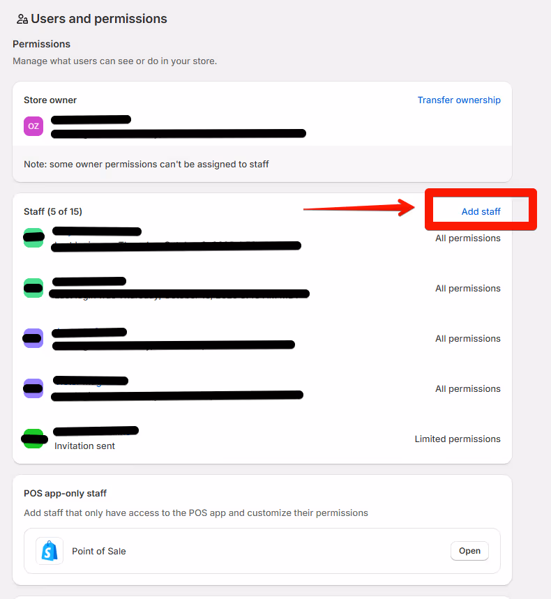 3) Add the staff user in Shopify