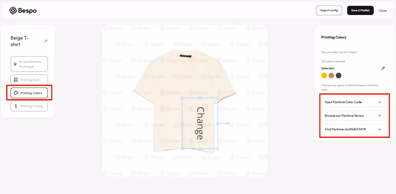 Click Printing Colors in the left panel. Use one of the tools to pick your brand color(s):