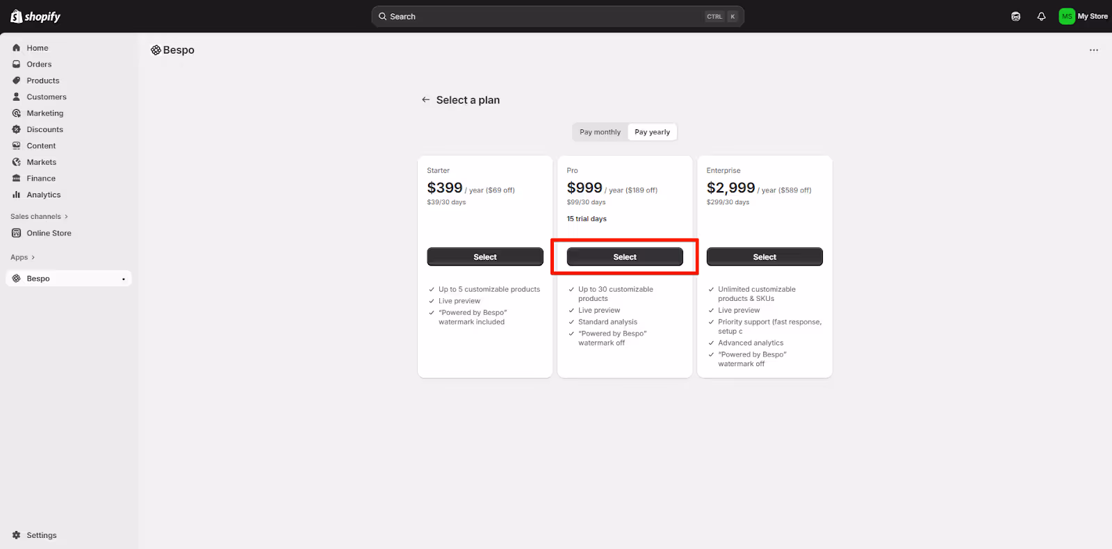 Make sure you’re on Shopify’s App Store at apps.shopify.com/bespo.